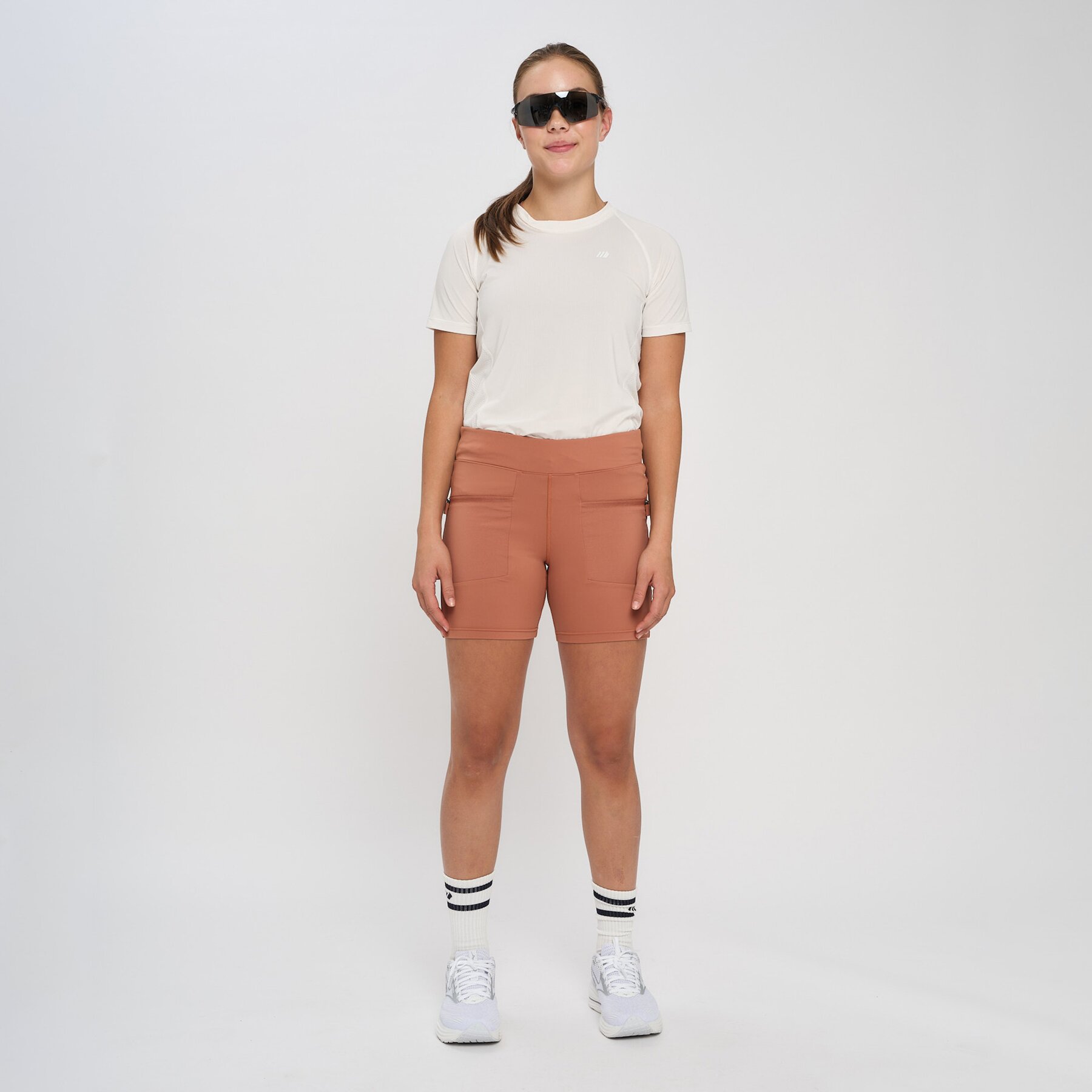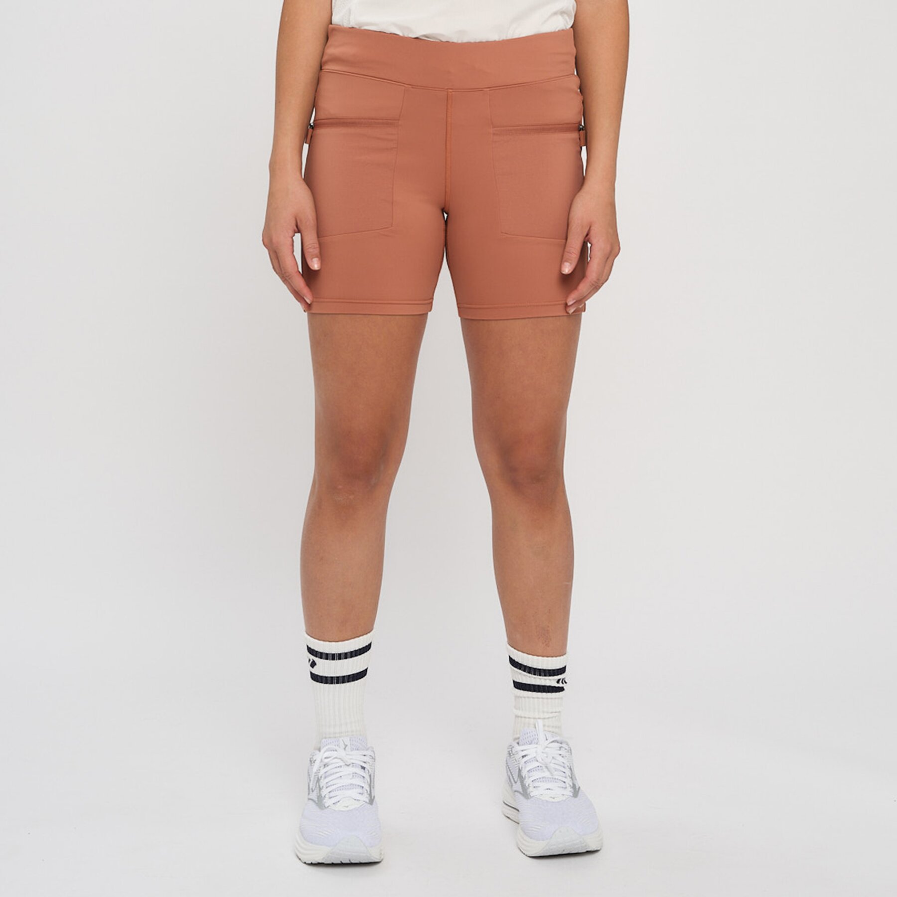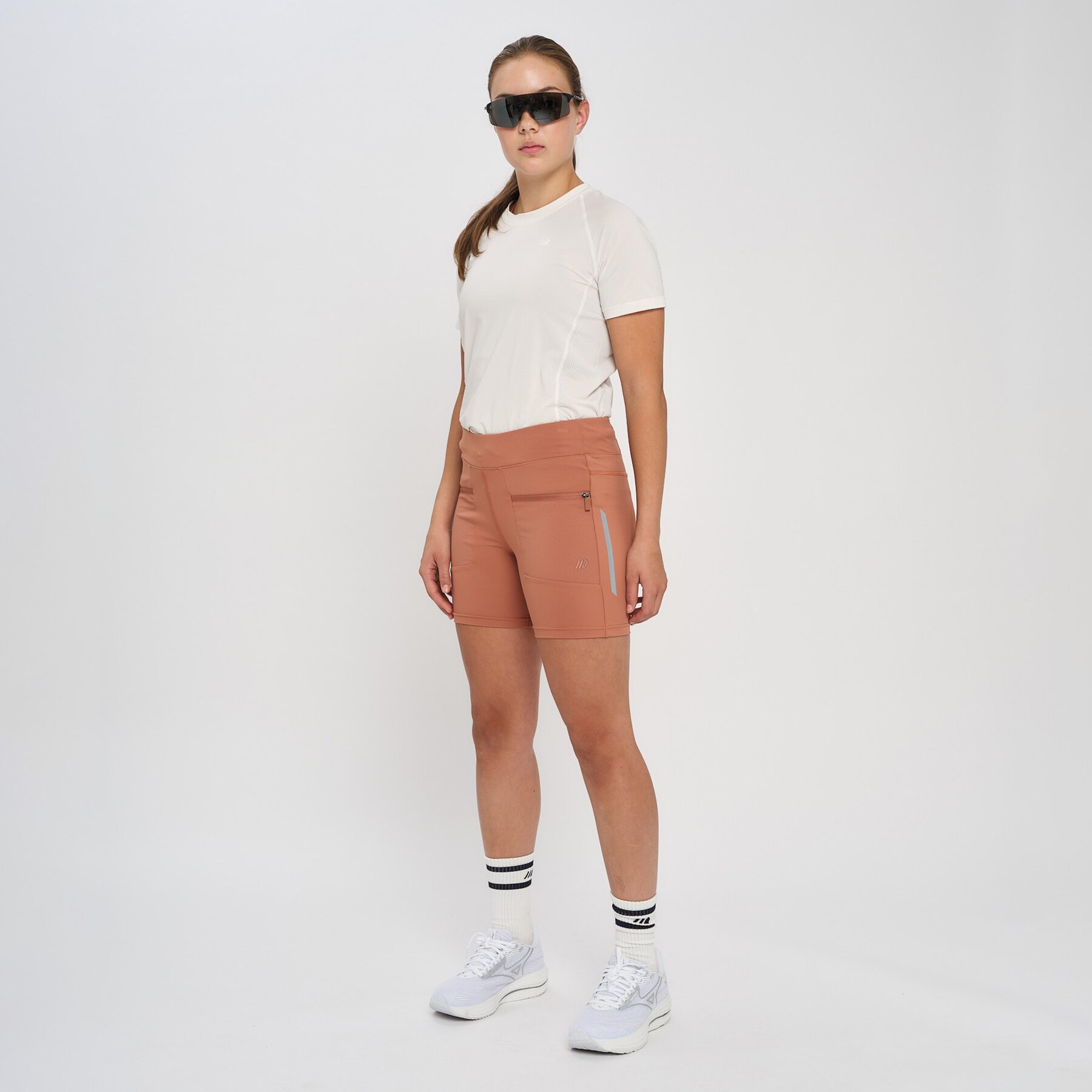 Denne shortsen i tights kvalitet er designet for å bevege seg med deg, enten du er ute på tur, på trening eller bare på farten. Med høyt liv og elastisk linning som kan justeres med snorstramming, får du en perfekt passform som sitter godt hele dagen. De praktiske frontlommene med glidelås gir deg plass til å oppbevare småting trygt og praktisk. Reflekselementene sørger for at du er synlig i mørket, så du kan være aktiv både dag og kveld.