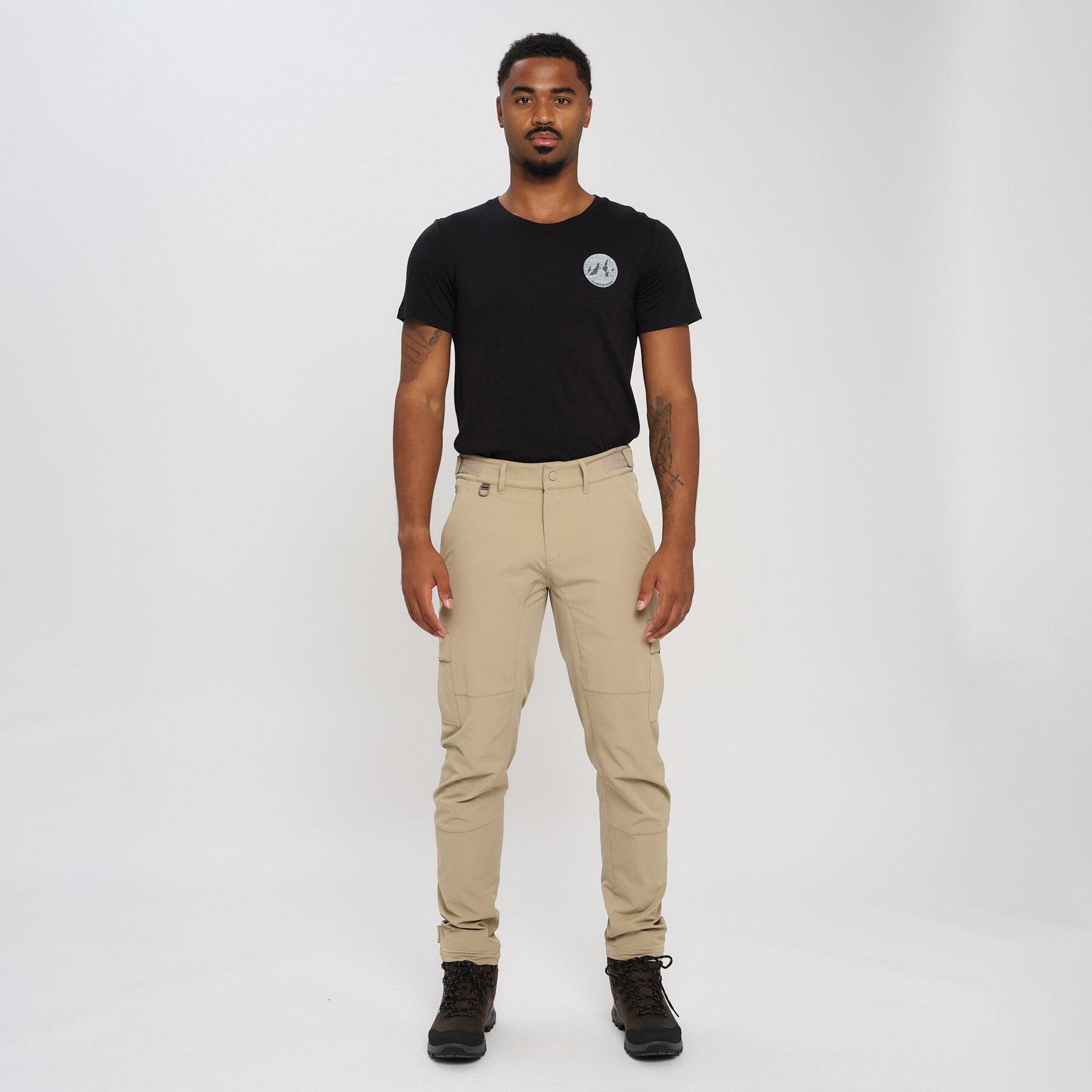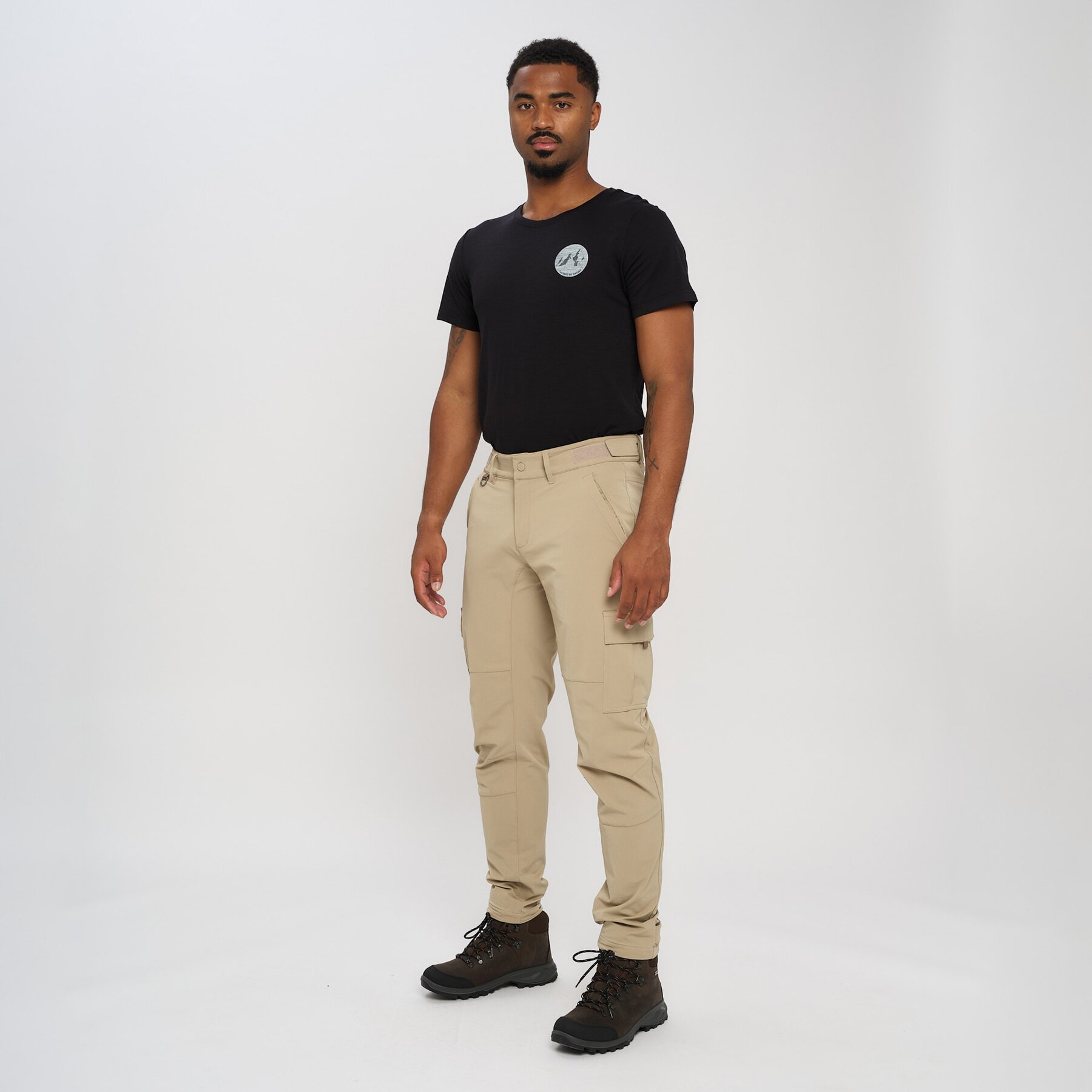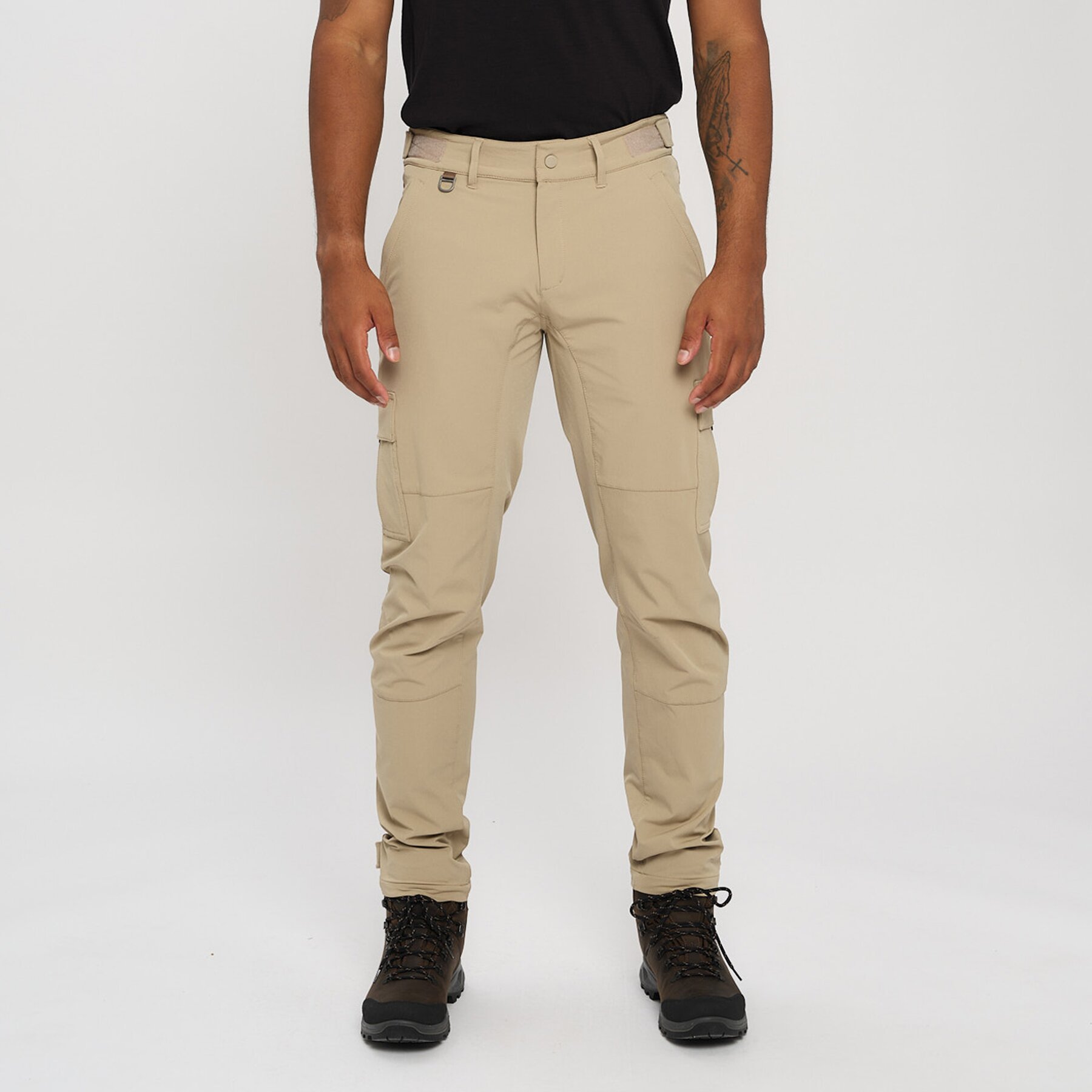 Allsidig turbukse laget av 90% nylon og 10% spandex, gir denne turbuksen en enestående bevegelsesfrihet, uansett om du klatrer opp bratte stier eller nyter en rolig tur. Cargolommene på lårene har god plass til kart, kompass og andre nødvendigheter, slik at du alltid er forberedt. Borrelåsjustering på benvidde og justerbart belte gir tilpasning etter behov, mens formsydd kneparti og stretchmateriale gir ekstra komfort og fleksibilitet. Perfekt for deg som ønsker både funksjonalitet og komfort på turen!