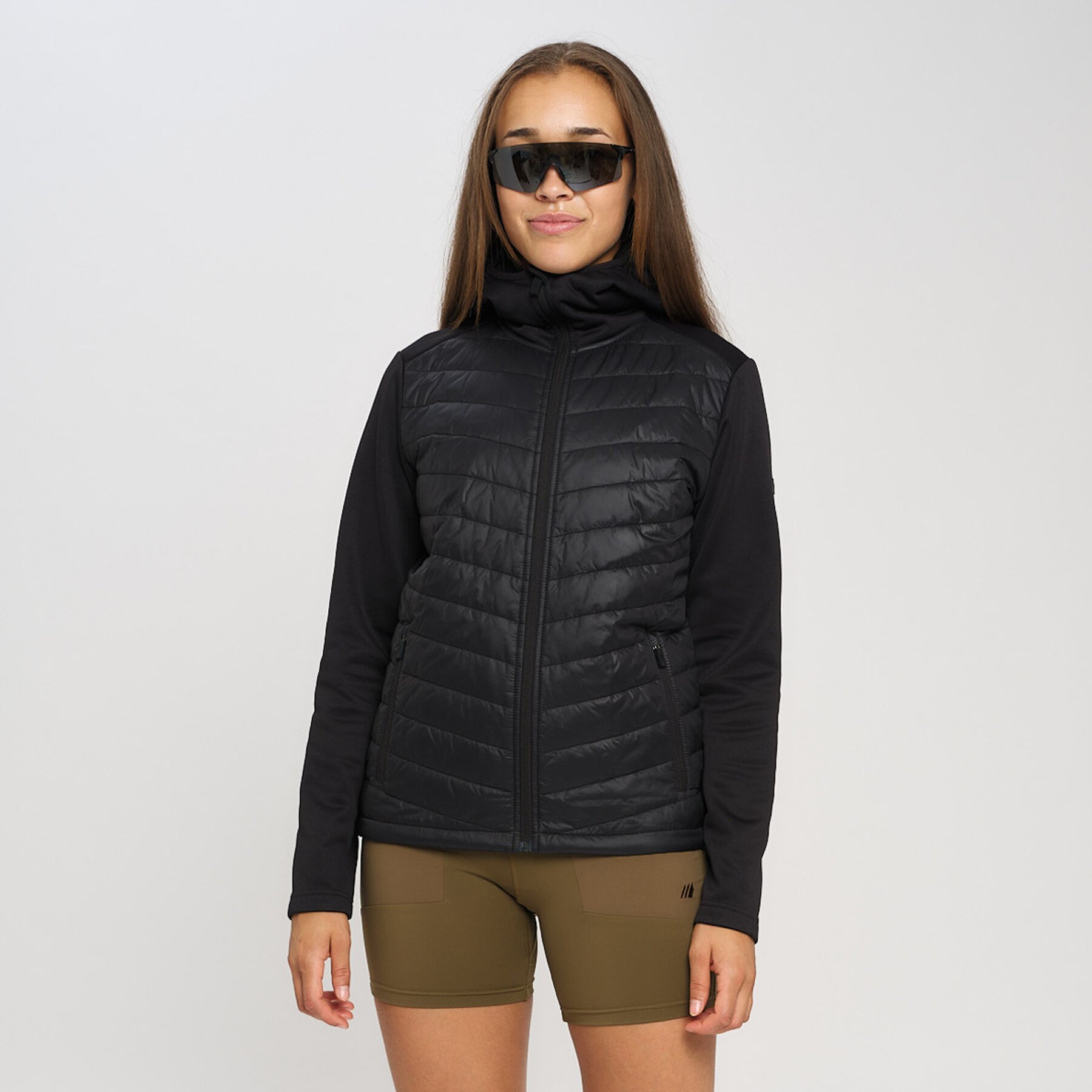 Berge hybrid jakke gjør deg godt rustet til trening og aktivitet, fremstilt med vatterte partier som bidrar til økt elastikk, isolering og varme. Andre detaljer som hette med høy, beskyttende krage og romslige lommer utstyrt med glidelås. Den har god elastikk som gir frihet til naturlig bevegelse og snorstramming for bedre tilpasning av passform og størrelse. Allsidig i bruk uansett om det er til hverdag eller trening.