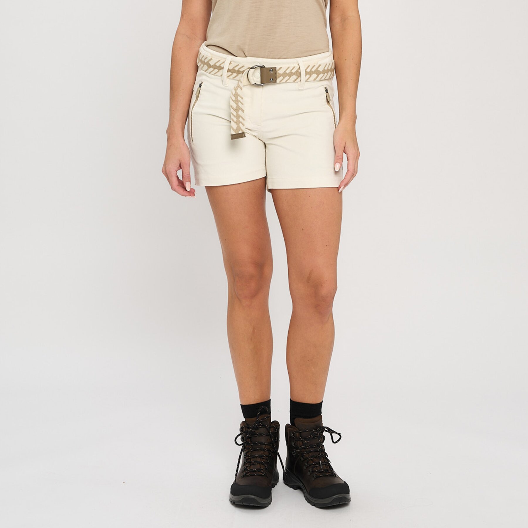 Robust og stretchy shorts utviklet med cordmateriale og en glattere finish på bakside. Shortsen har en kroppsnær og kort fit, utstyrt med belte slik at du enkelt kan justere passformen. Lommer strategisk plassert i front for trygg oppbevaring. Den har en enestående elastikk som gir høy ytelse og komfort til dager klatring, sykling eller fjelltur står på agendaen.