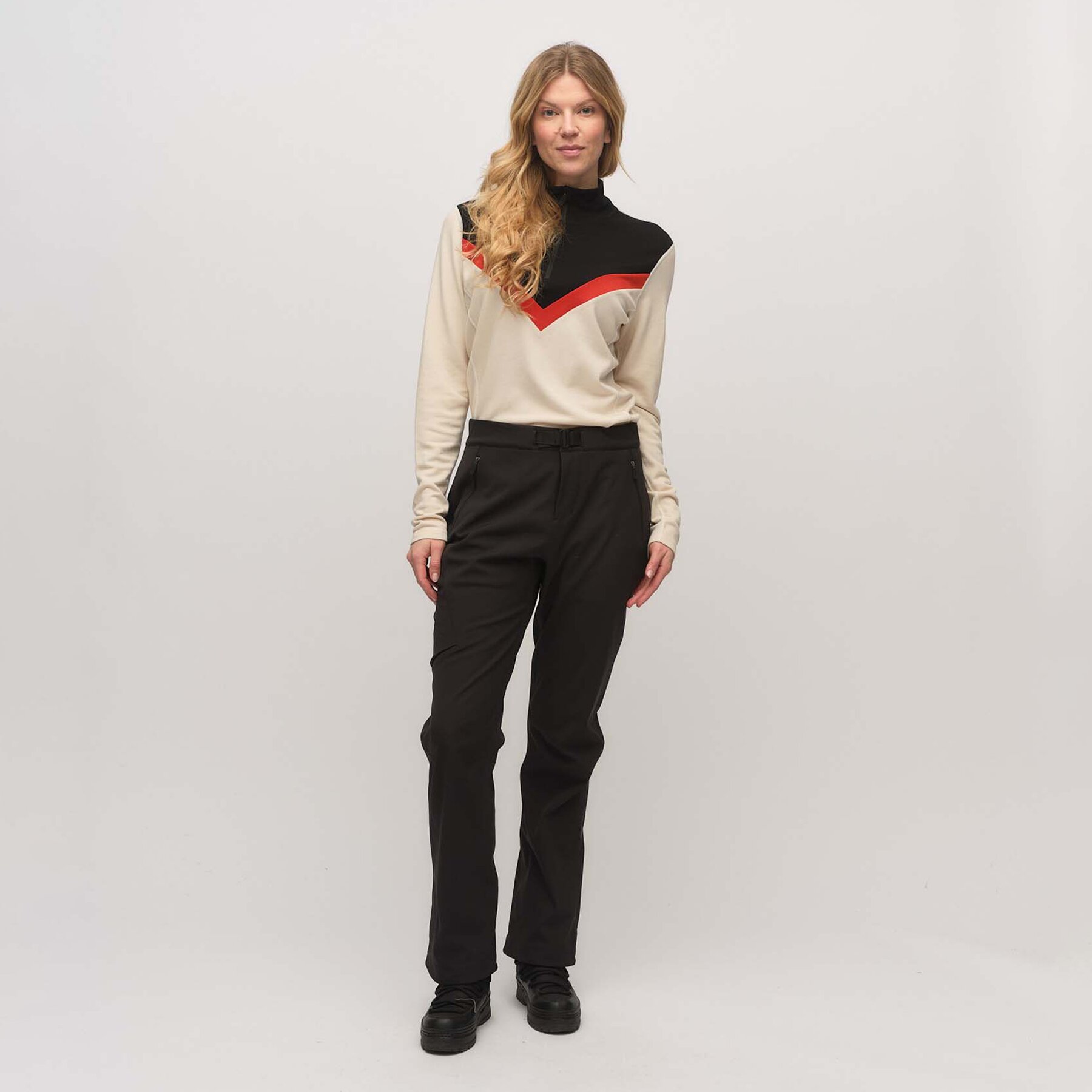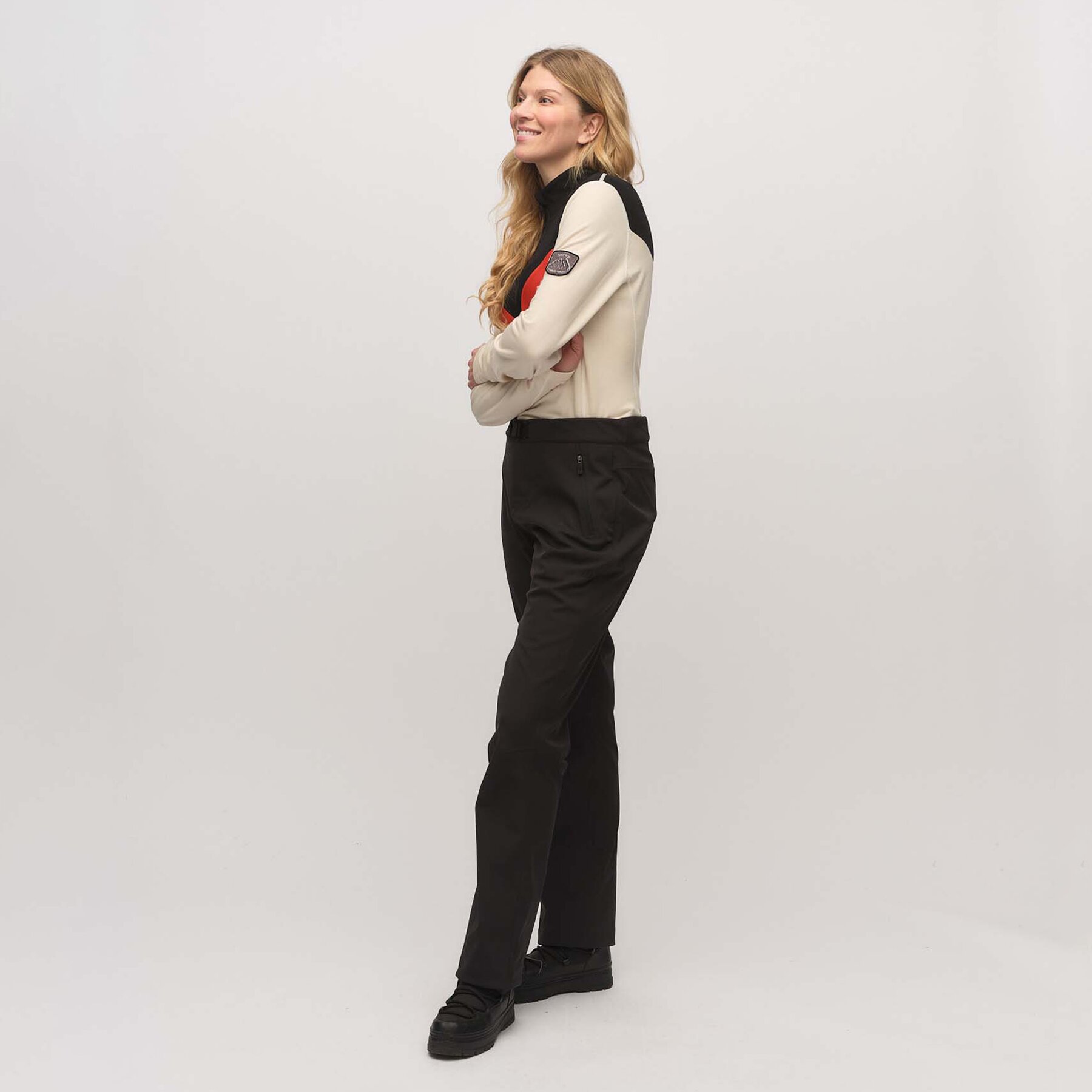 Softshellbukse designet for fungere optimalt under skiftende værforhold og for å gi frihet til naturlig bevegelse. Laget av 86% nylon og 14% spandex, som gir en perfekt balanse mellom høy fleksibilitet og holdbarhet. Det myke fleecefôret på innsiden holder deg varm og komfortabel, samtidig som det gir et ekstra lag med isolasjon. Med en vannavvisende overflate og vindtett konstruksjon holder buksen deg tørr og rustet til all slags vær. Pusteevnen optimaliserer komforten, slik at du unngår ubehagelig fuktighet, selv under intense aktiviteter. Stretchy kvalitet og formsydd kneparti gir økt bevegelighet og komfort, perfekt for aktiviteter som ski, fotturer og klatring. Buksen har en elastisk linning med et fast justerbart belte, slik at du kan tilpasse passformen og sikrer at den sitter godt.