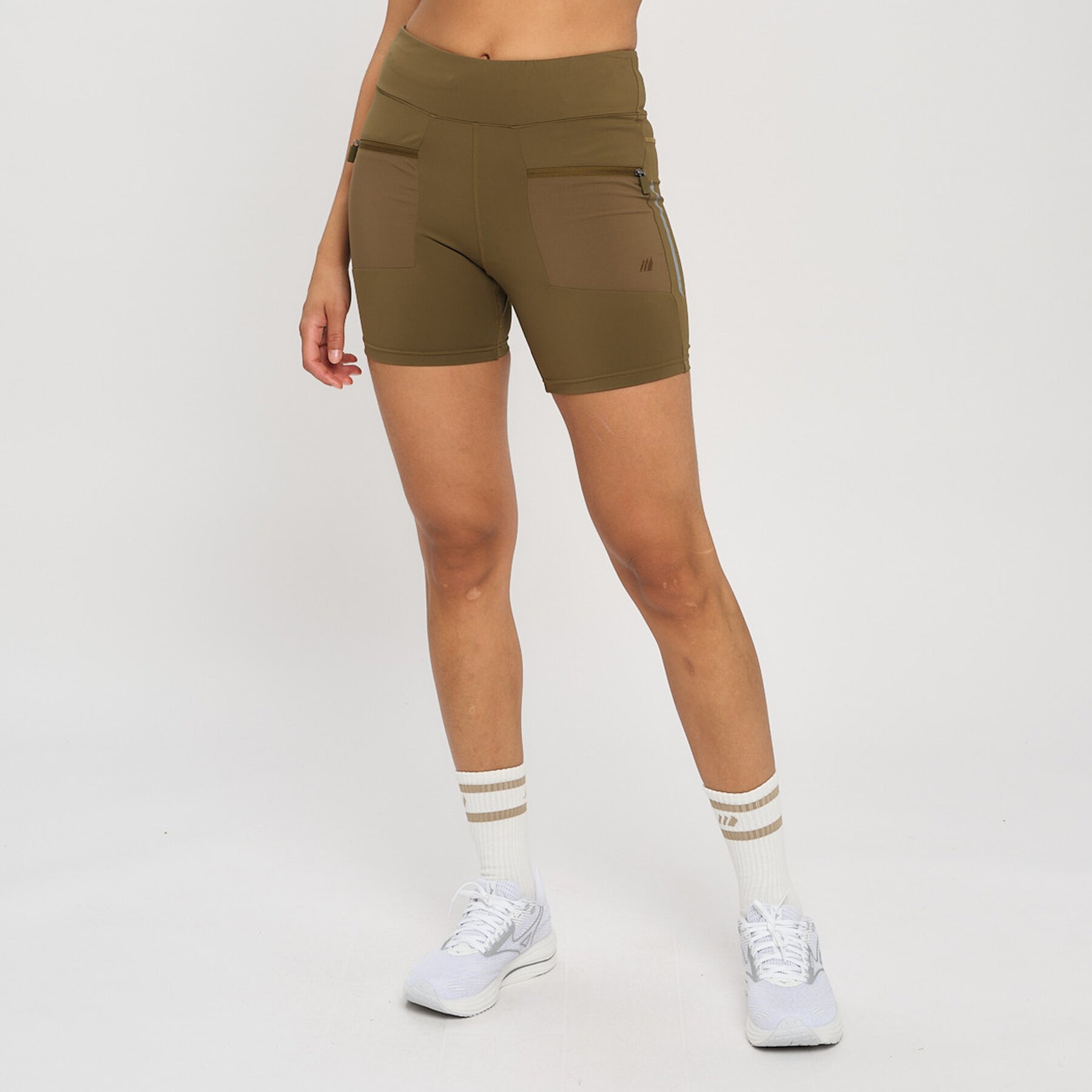 Denne shortsen i tights kvalitet er designet for å bevege seg med deg, enten du er ute på tur, på trening eller bare på farten. Med høyt liv og elastisk linning som kan justeres med snorstramming, får du en perfekt passform som sitter godt hele dagen. De praktiske frontlommene med glidelås gir deg plass til å oppbevare småting trygt og praktisk. Reflekselementene sørger for at du er synlig i mørket, så du kan være aktiv både dag og kveld.