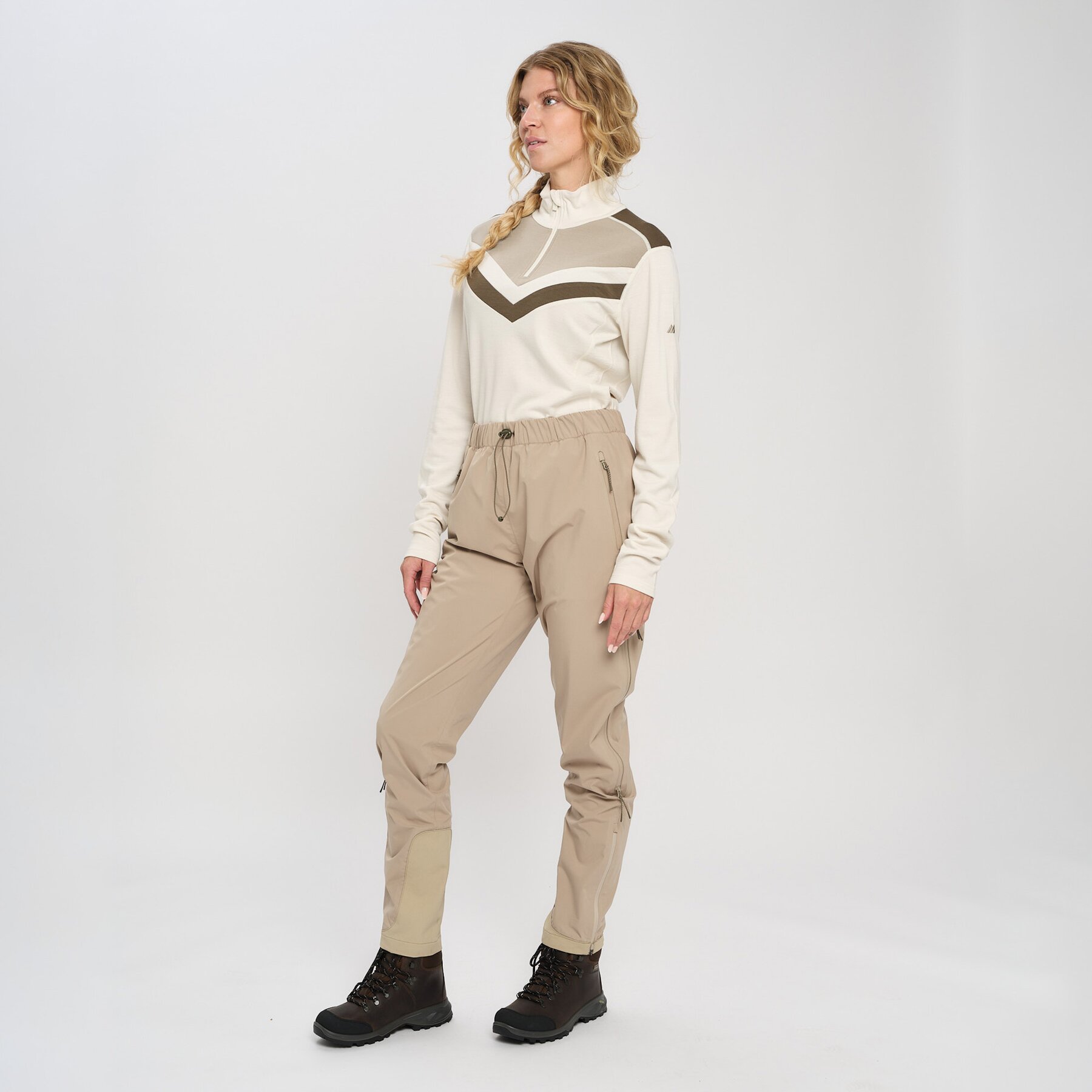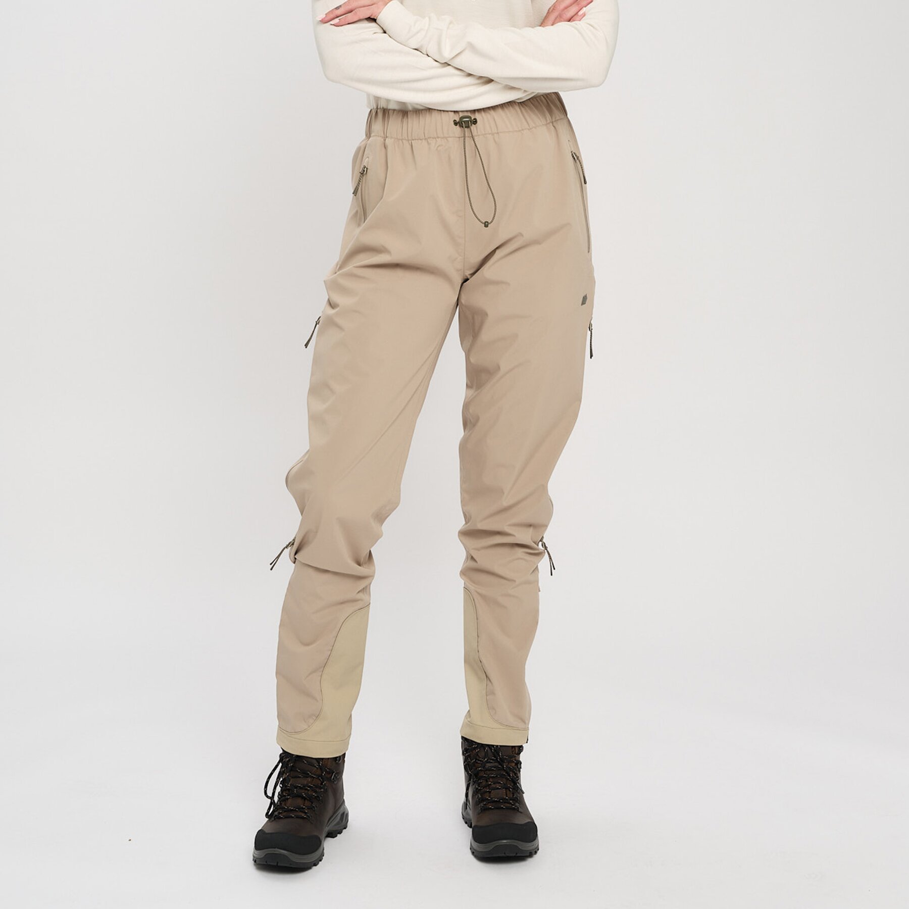 Skallbukse utviklet i 100% resirkulert polyester gir høy ytelse med lav vekt og enestående beskyttelse. Den har pusteegenskaper WVP 20,000 og fullstendig vann- og vindtetthet. Denne buksen yter det beste av funksjonalitet og design, slik at du med trygghet kan nyte turen og plutselige væromslag. Alle synlige glidelåser er vannavvisende og resirkulerte AquaGuard-glidelåser fra YKK. Andre viktige detaljer er forsterkningsmateriale på steder som er ekstra utsatt for slitasje, og strammefunksjon rundt livet for bedre tilpasning. Frontlommer med nettingsforet lommeposer for bedre ventilasjon.